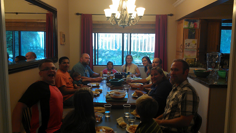 Today is Joe's last day before he goes to the MTC tomorrow. So after school, we ran to the store to get a few last minute things he was lacking. Then we all got together to have a big dinner, his favorite, spaghetti dinner. Mom made Gram's famous spaghetti sauce and then everyone else contributed. We had a nice evening, it went to fast and then it was time to go. He is so good with all the kids. They all love him so much!