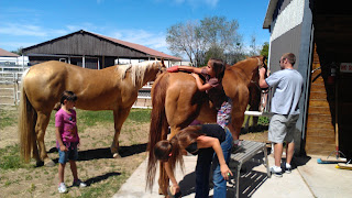 We left to meat Rachie and Dave's family at the equestrian center. We had the windows down and music blasting, we look back and Lili is holding on to her hat for dear life loving singing her lungs out to the song. hahahah